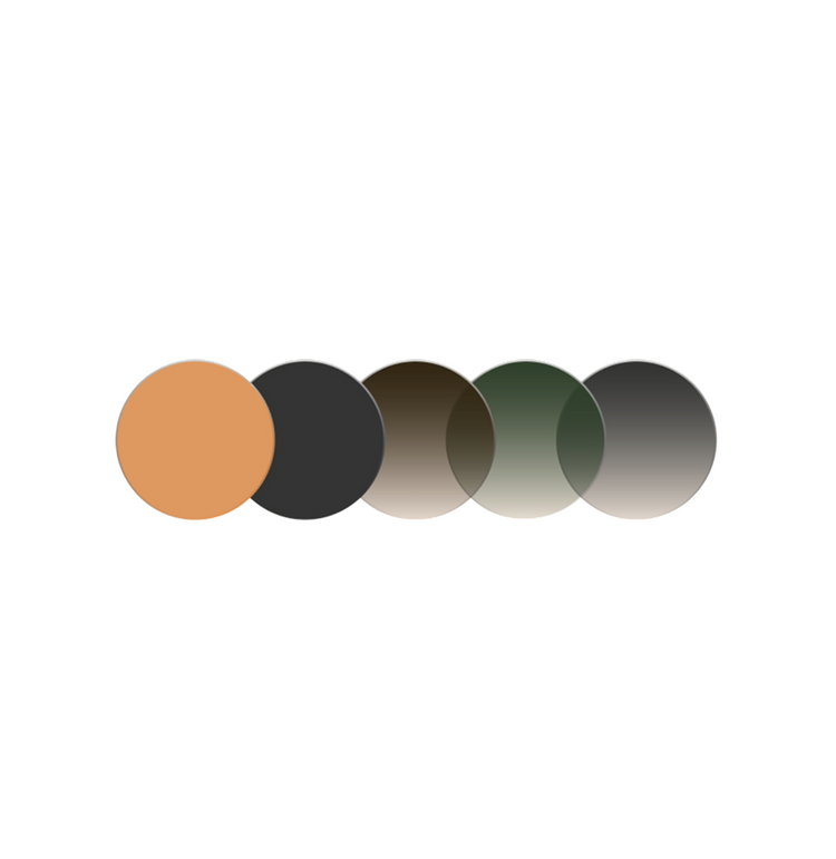 High-performance polycarbonate with 100% UV protection; standard tinted with optional polarized, photochromic, and prescription-ready upgrades.